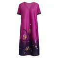 Get Women Dresses Summer 2021 Loose Miyake Pleated V Neck Short Sleeve Printed A Line Dress For Women 45-75kg